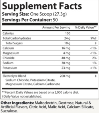 | Superior Hydration | Electrolyte Blend with Sodium, Potassium, Magnesium, and Calcium for optimal hydration and improved muscle function. |